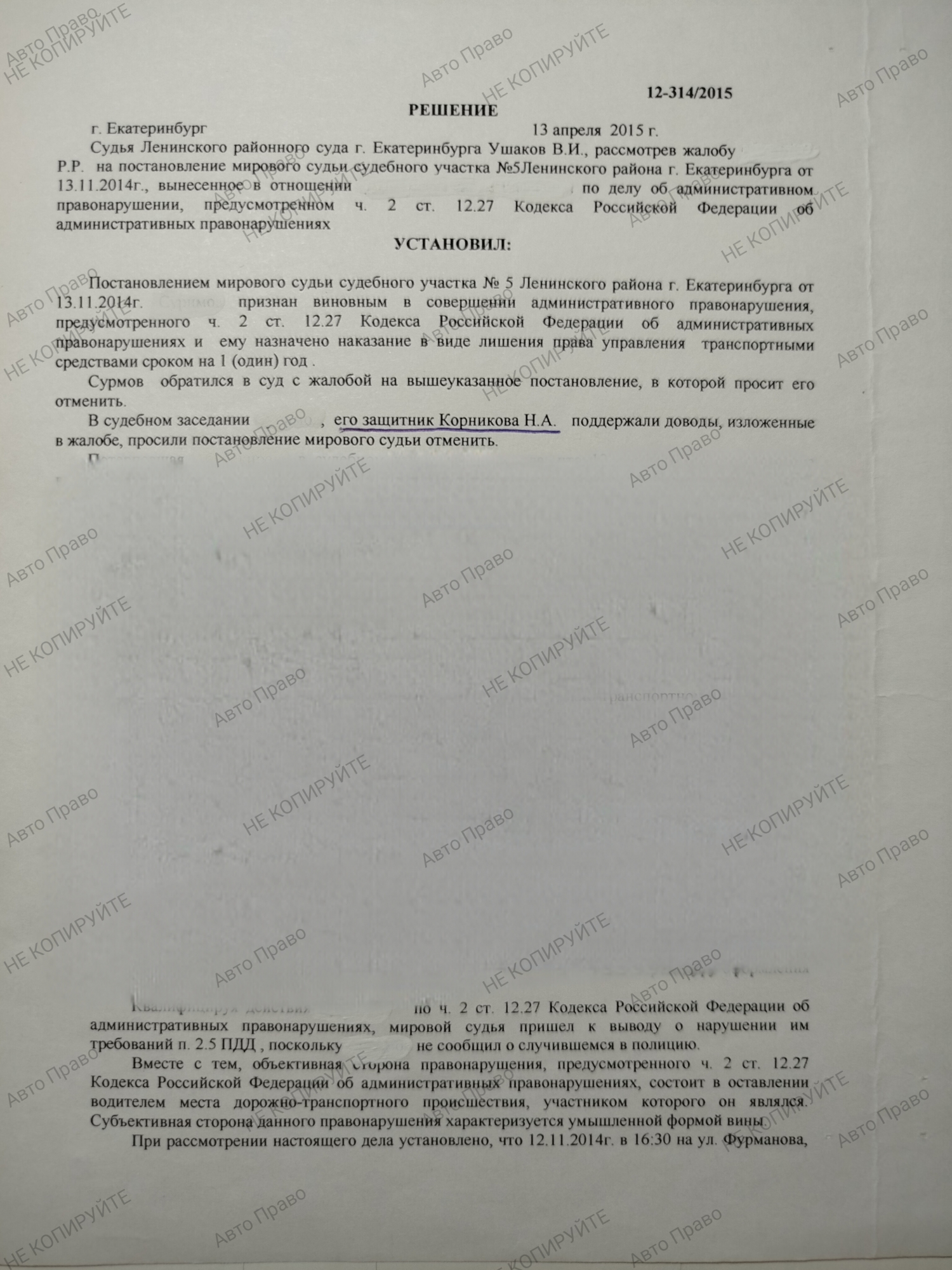 Юридическая защита по ч.2 ст 12.27 КоАПРФ Оставление водителем места ДТП