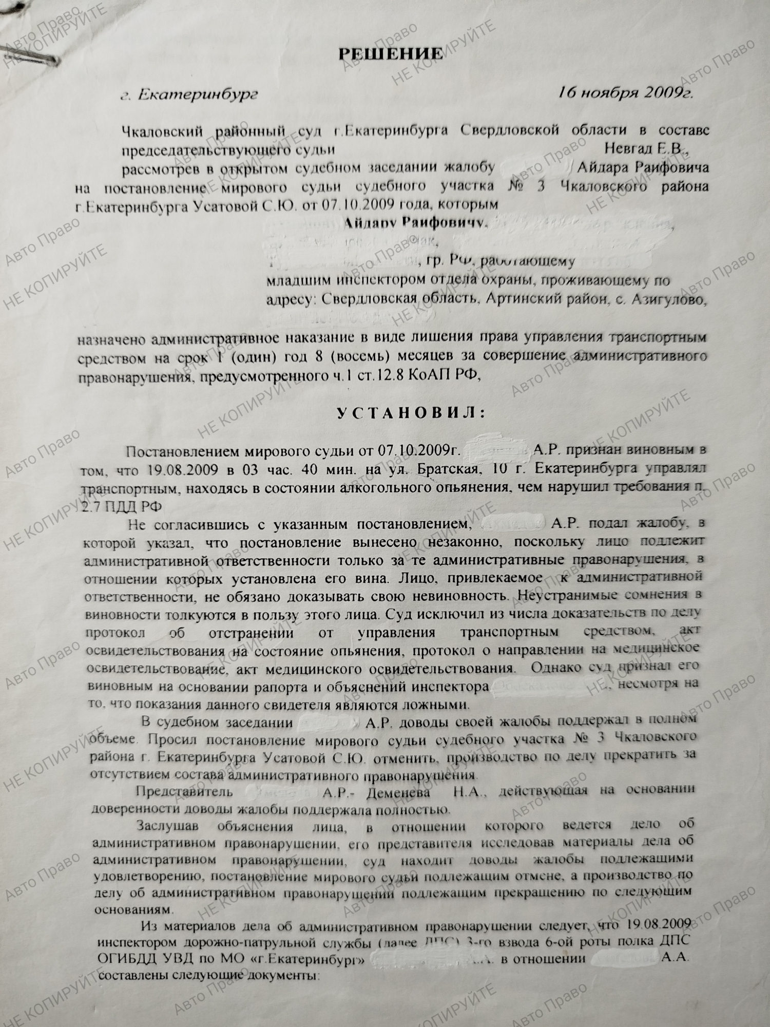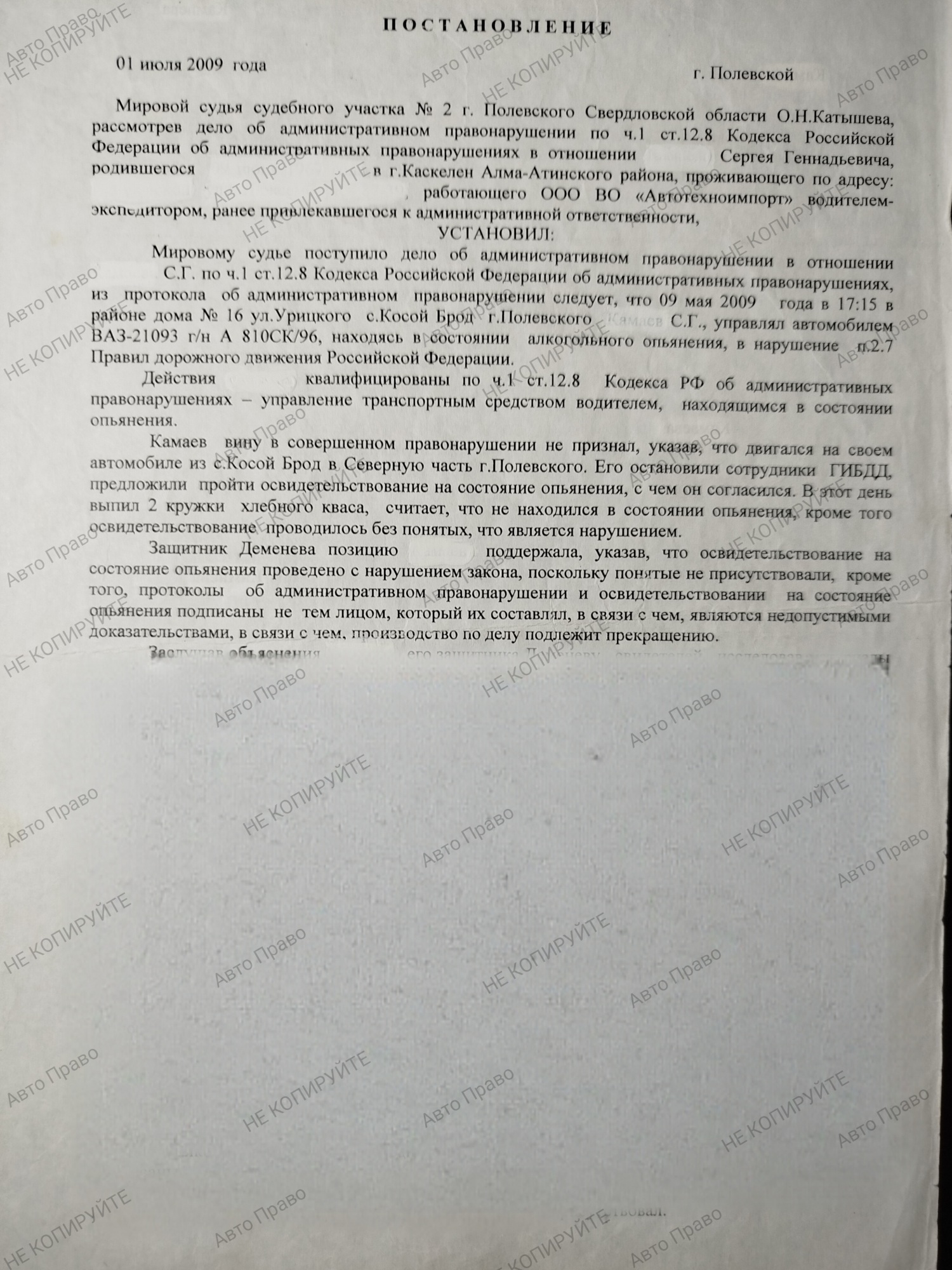 Главная » Выигранные дела » ч.1, 2 ст 12.8 КоАПРФ